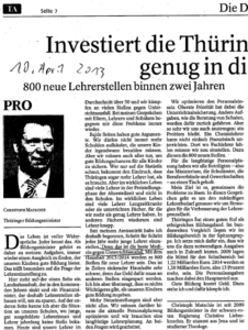 Zitat Thüringer Bildungsminister Matschie in der Thüringer Allgemeine vom 10.April 2013: